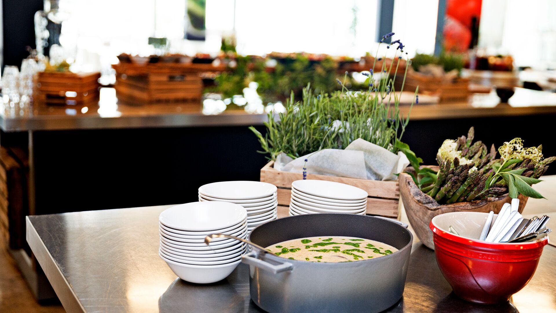 Paikallisten raaka-aineiden ja satokausien antimien käyttö on ISS:n ravintolapalveluiden keskiössä. Satokausien tuoreet raaka-aineet muuttuvat resepteiksi, ruokalistoiksi ja teemoiksi yhteistyössä kumppaneiden, kuten Valion, kanssa.